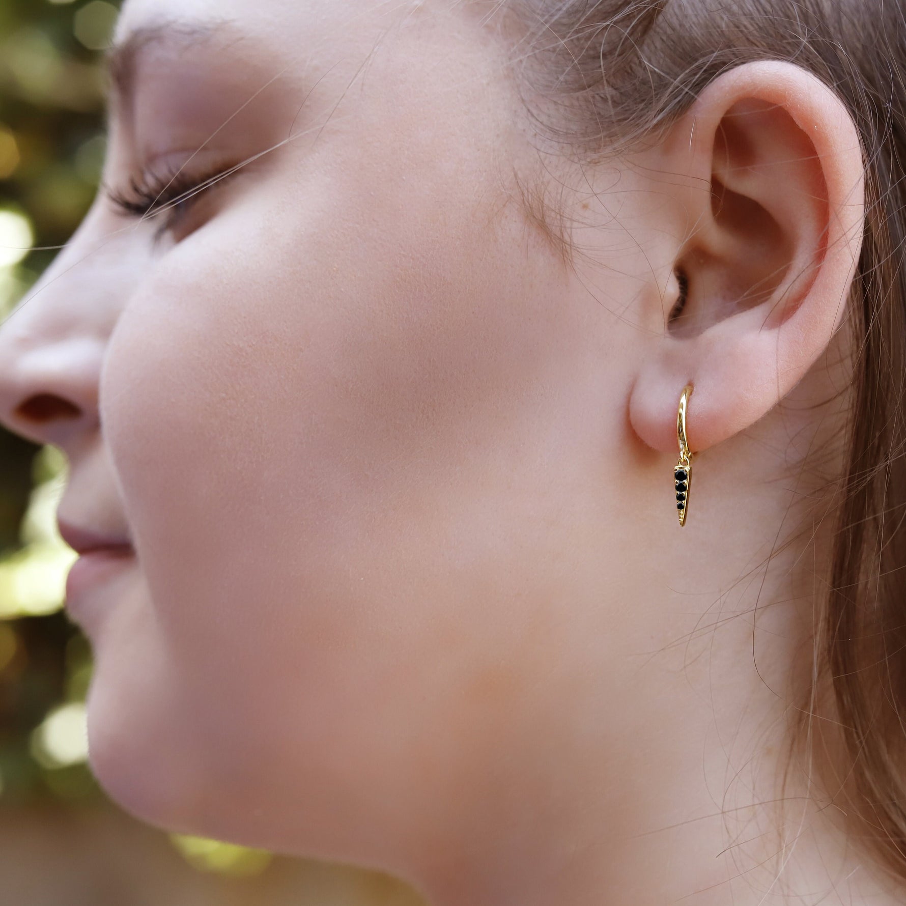 Huggie inner diameter 6 mm and Dagger drop hoop inner diameter 8 mm with dagger drop 3 mm