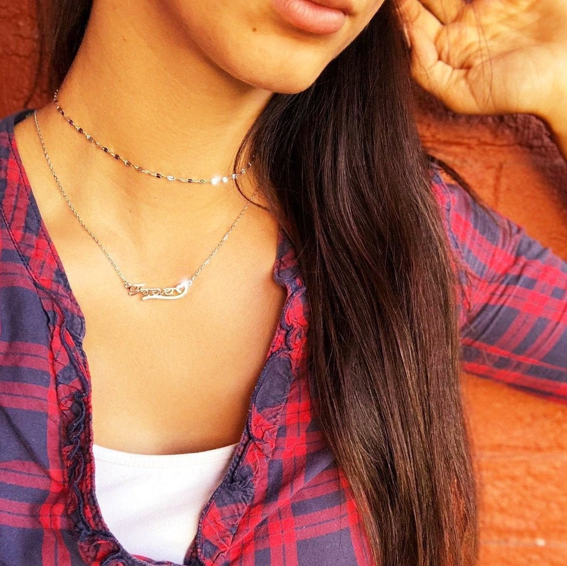 Samantha - Super Dainty Chain Choker•Double Mirror Chain• Lace Chain• Simple Choker Necklace