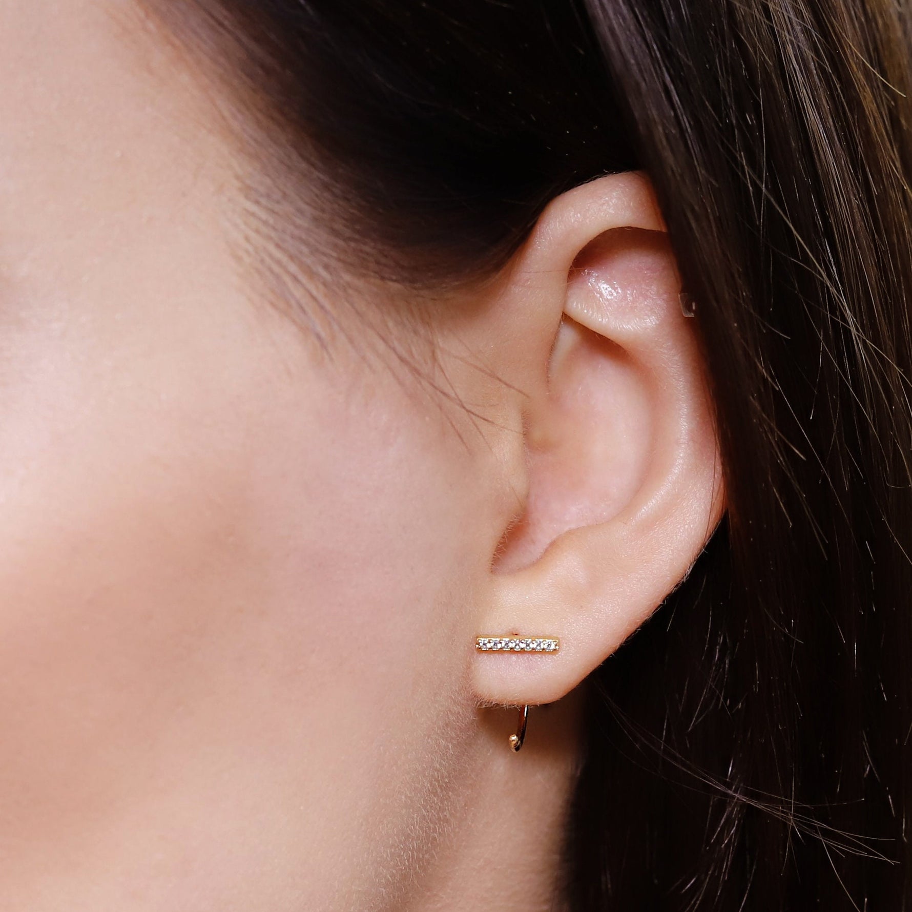 Elena - Minimalist Pave Staple Hoops • small hoop earrings • open hoop earrings • dainty hoops • silver hoops • Simple hoops