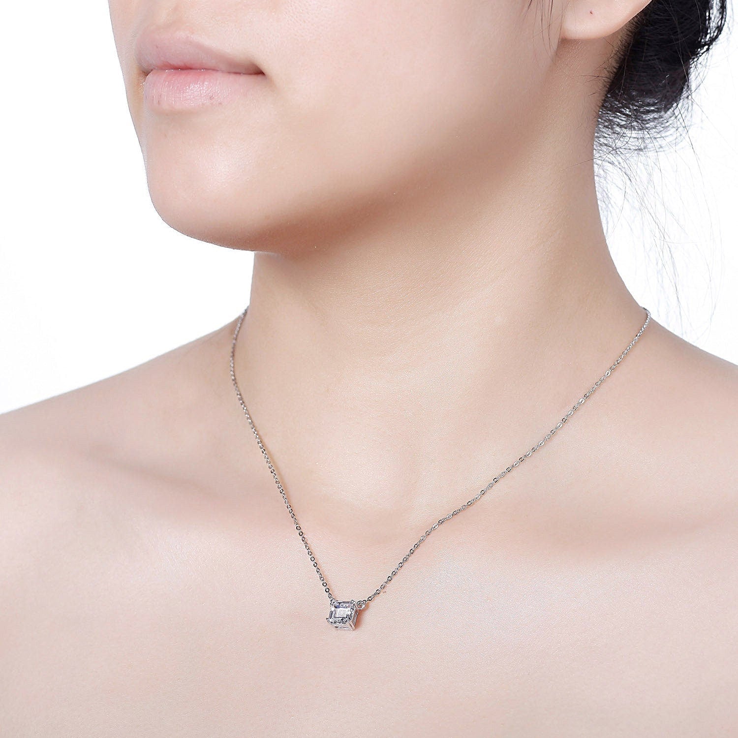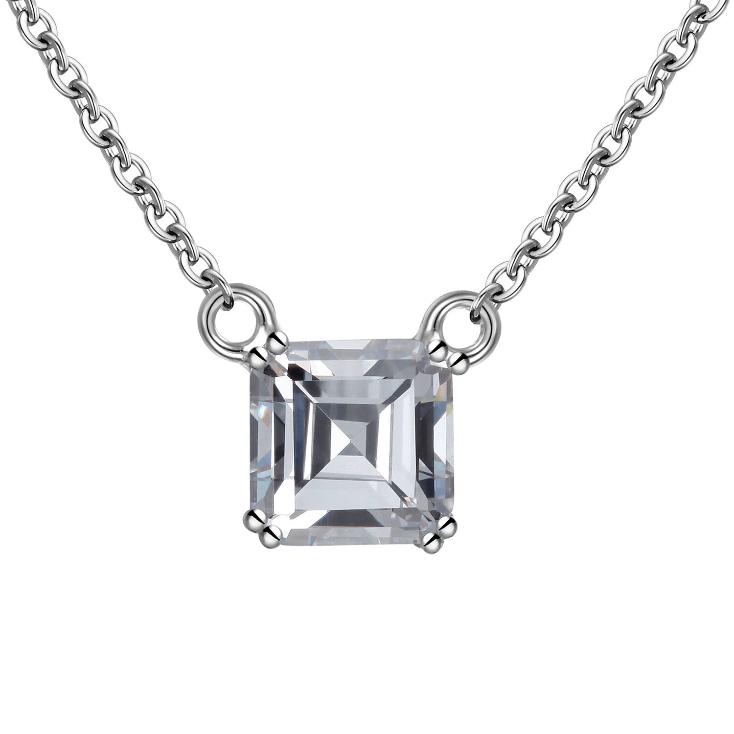 LORNA- 925 Sterling Silver dainty Necklace,Solitaire Asscher necklace, Man Made Diamond Stimulant, Bridal Wedding Gift