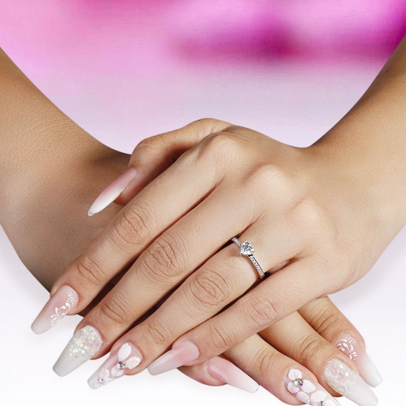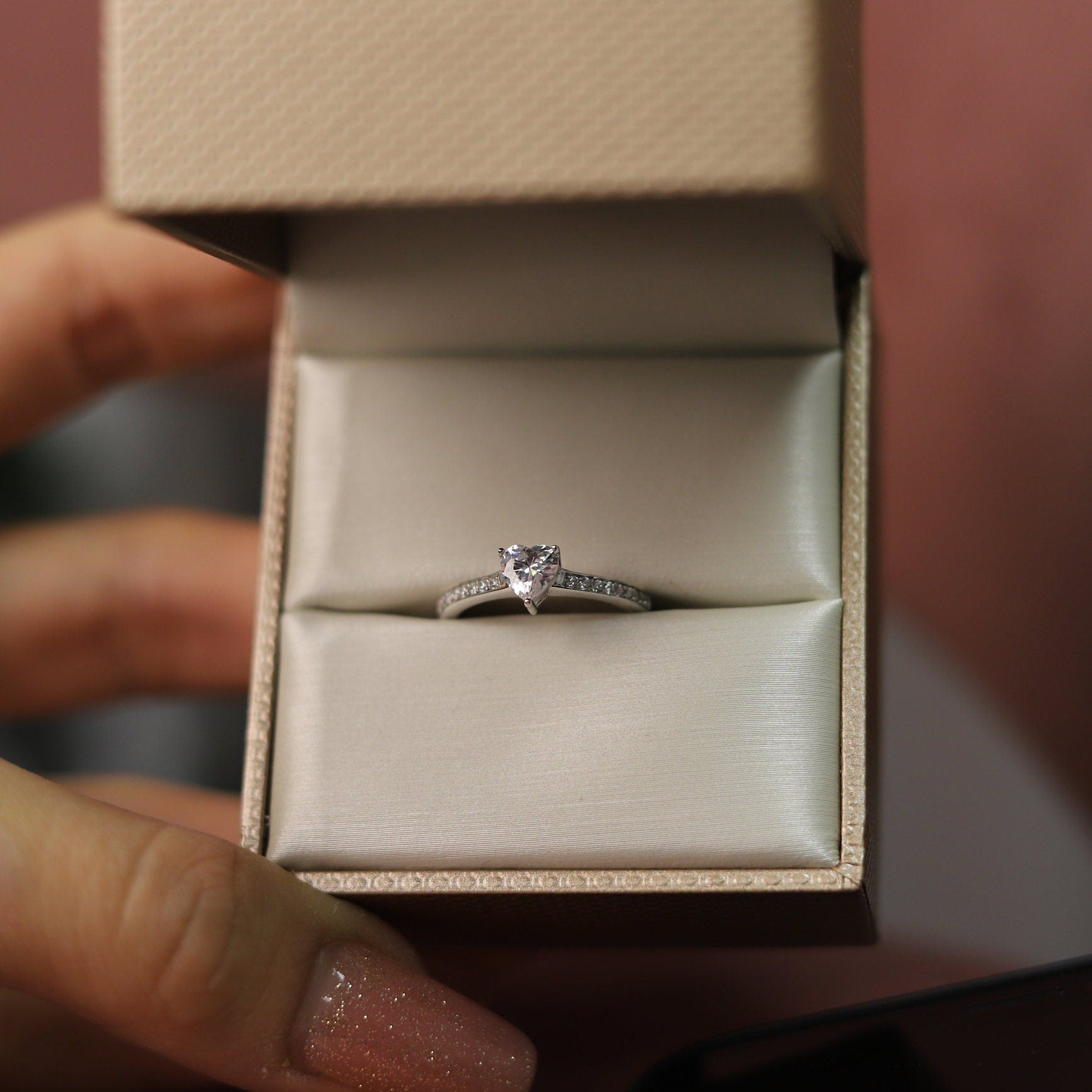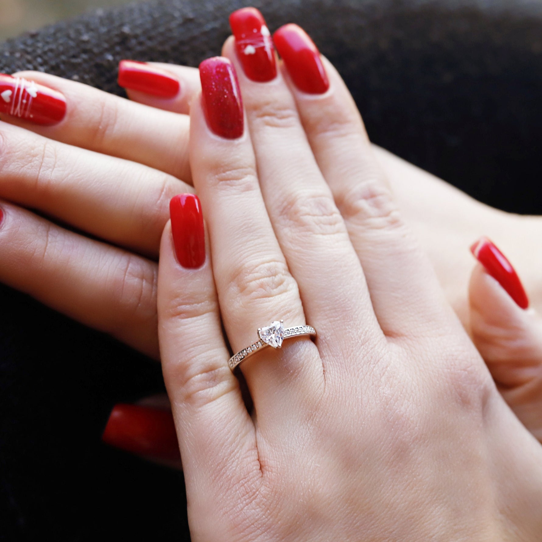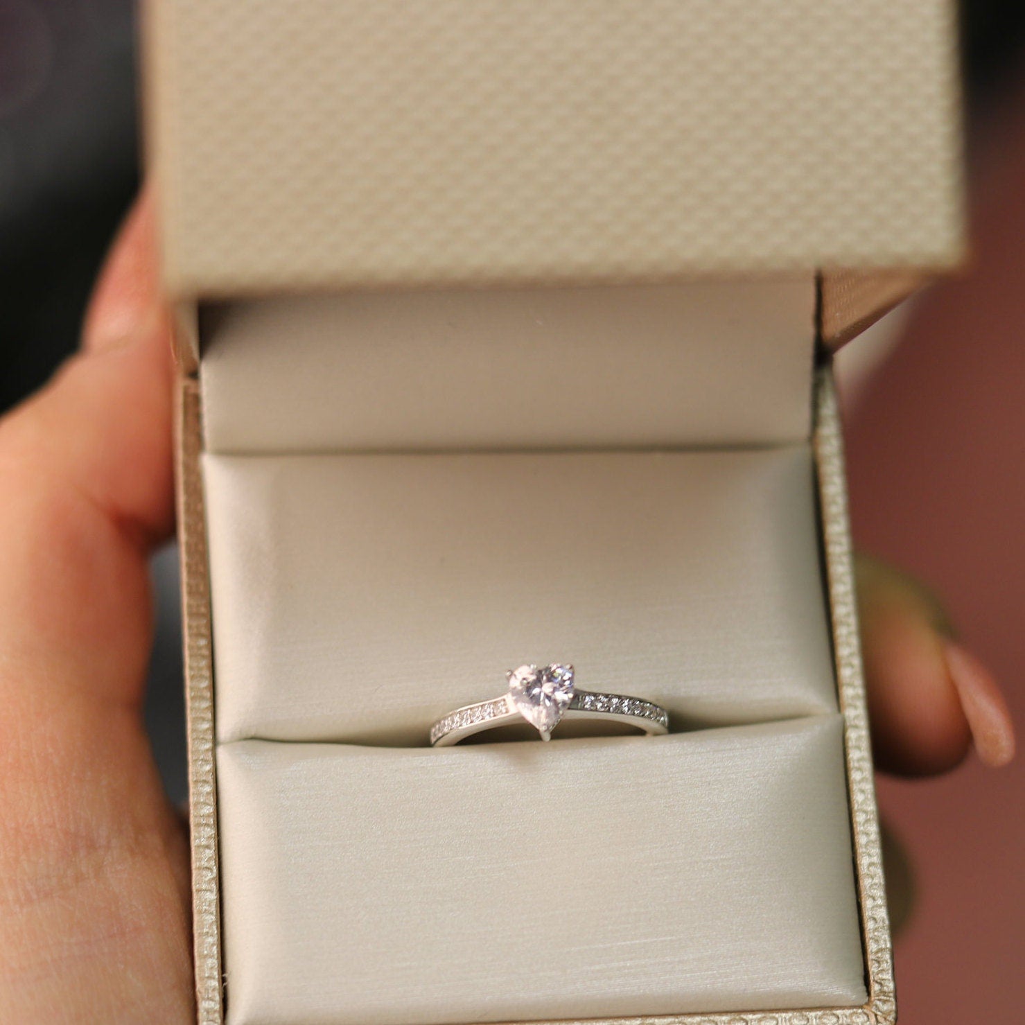 Jasmine - 925 Sterling Silver Heart Cubic Zirconia Stone Man Made Diamond Simulants, Bridal Ring for Women