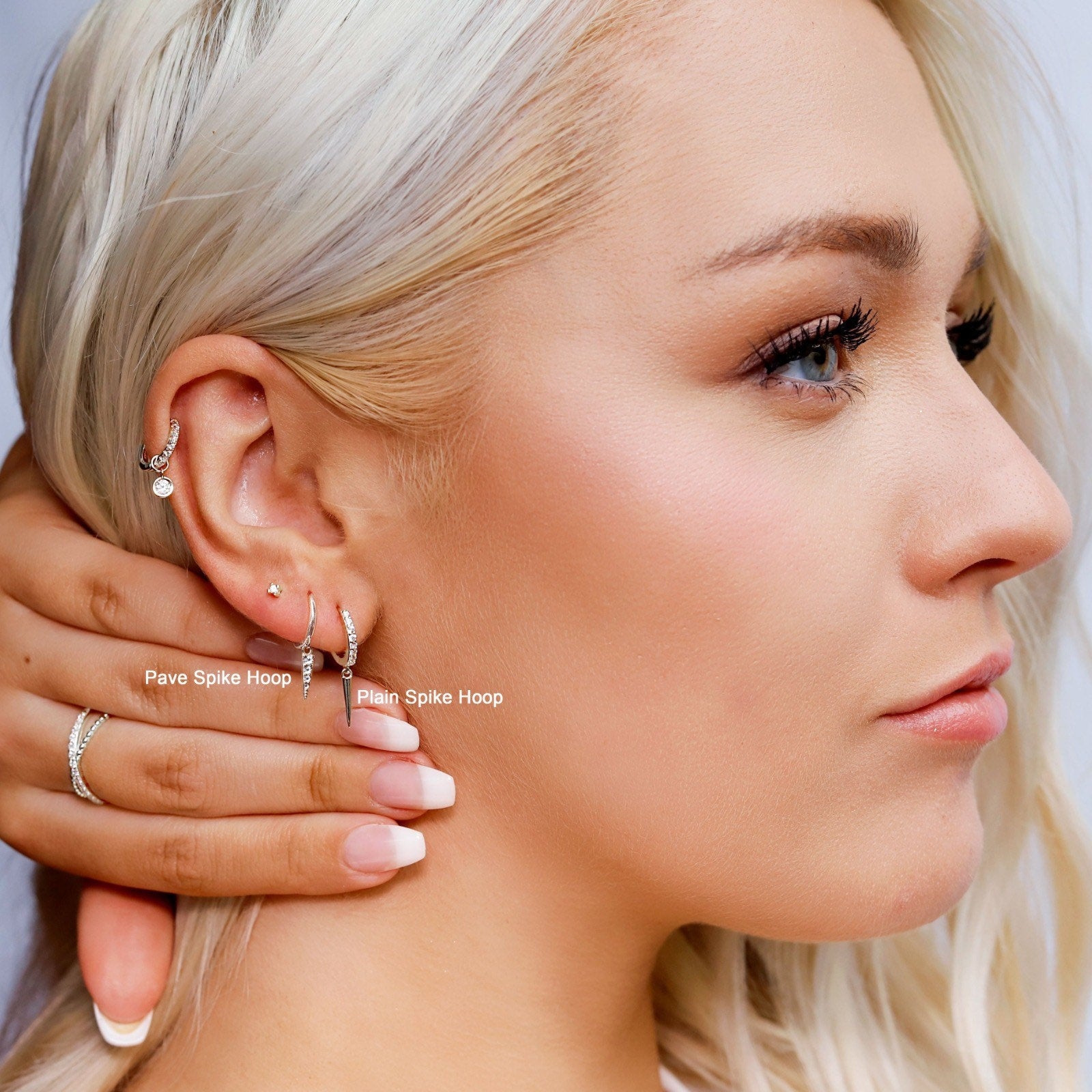 • Minimalist spike plain hoops 8mm & dangle pave spike charm hoop 7.5 mm; (Please check size & piercing location to make sure they fit)