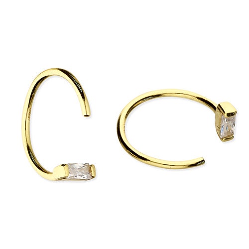 Unique, stylish, eye catching small dainty baguette hoops . A new trend of baguette hoops that hugs your ear. Handcrafted in sterling silver with Gold and 18K gold plating.