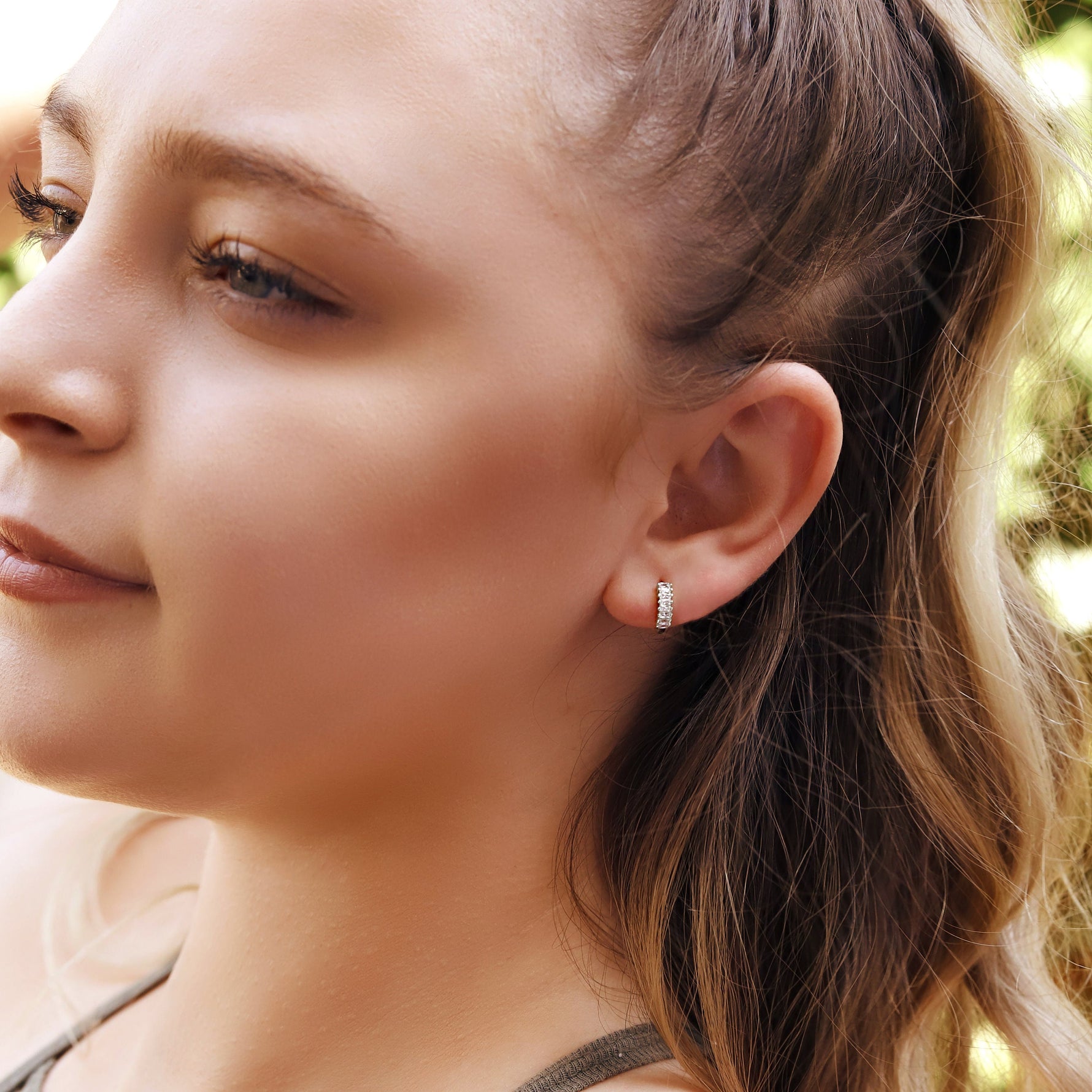 Sterling Silver Huggie Hoop Earrings | Baguette Hoop Earrings | Minimalist Earrings | Gold Lightweight Hoops | Simple Silver Earrings |