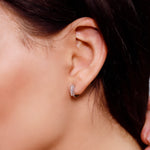Pair of elegant baguette cut classy sterling silver minimalist hoop earrings.