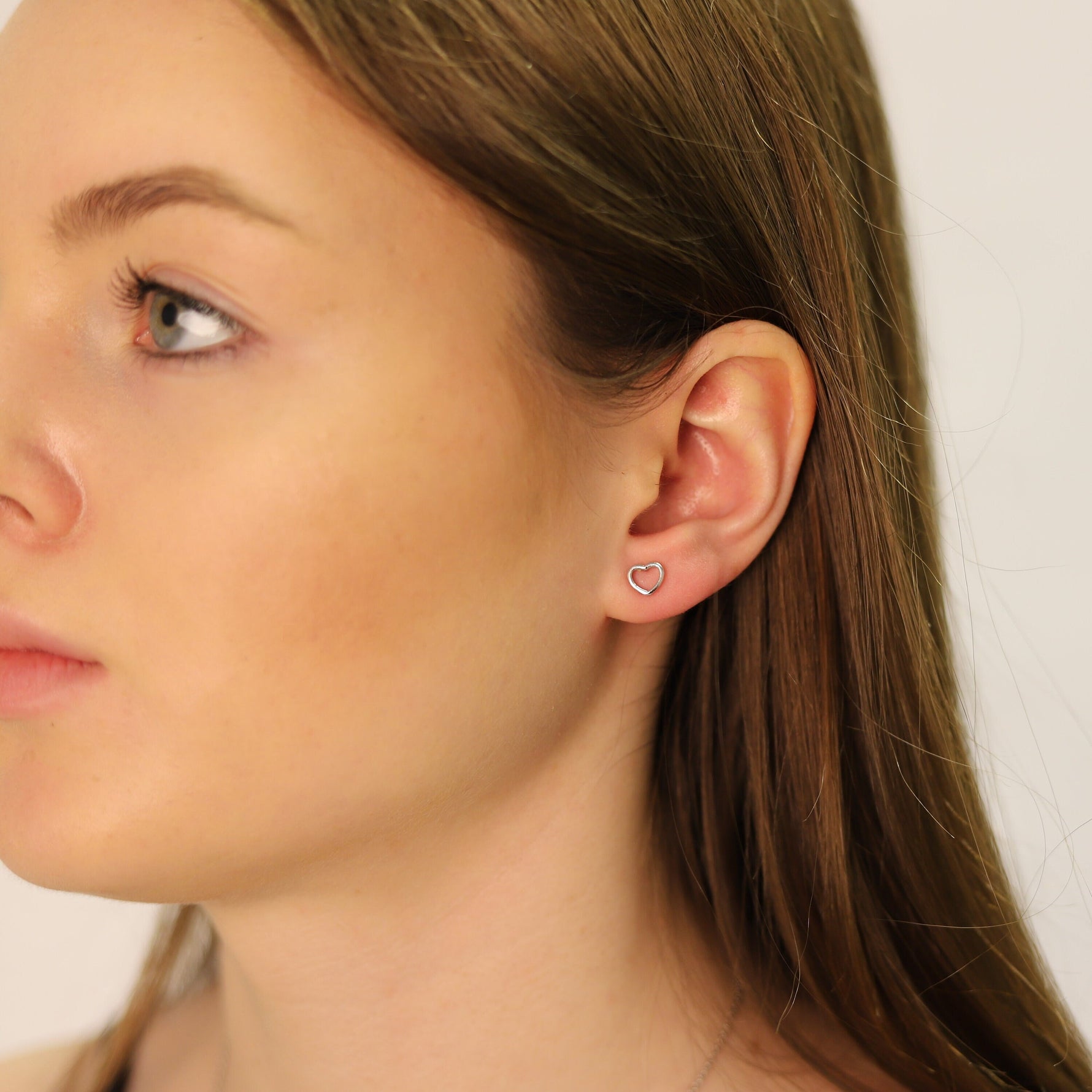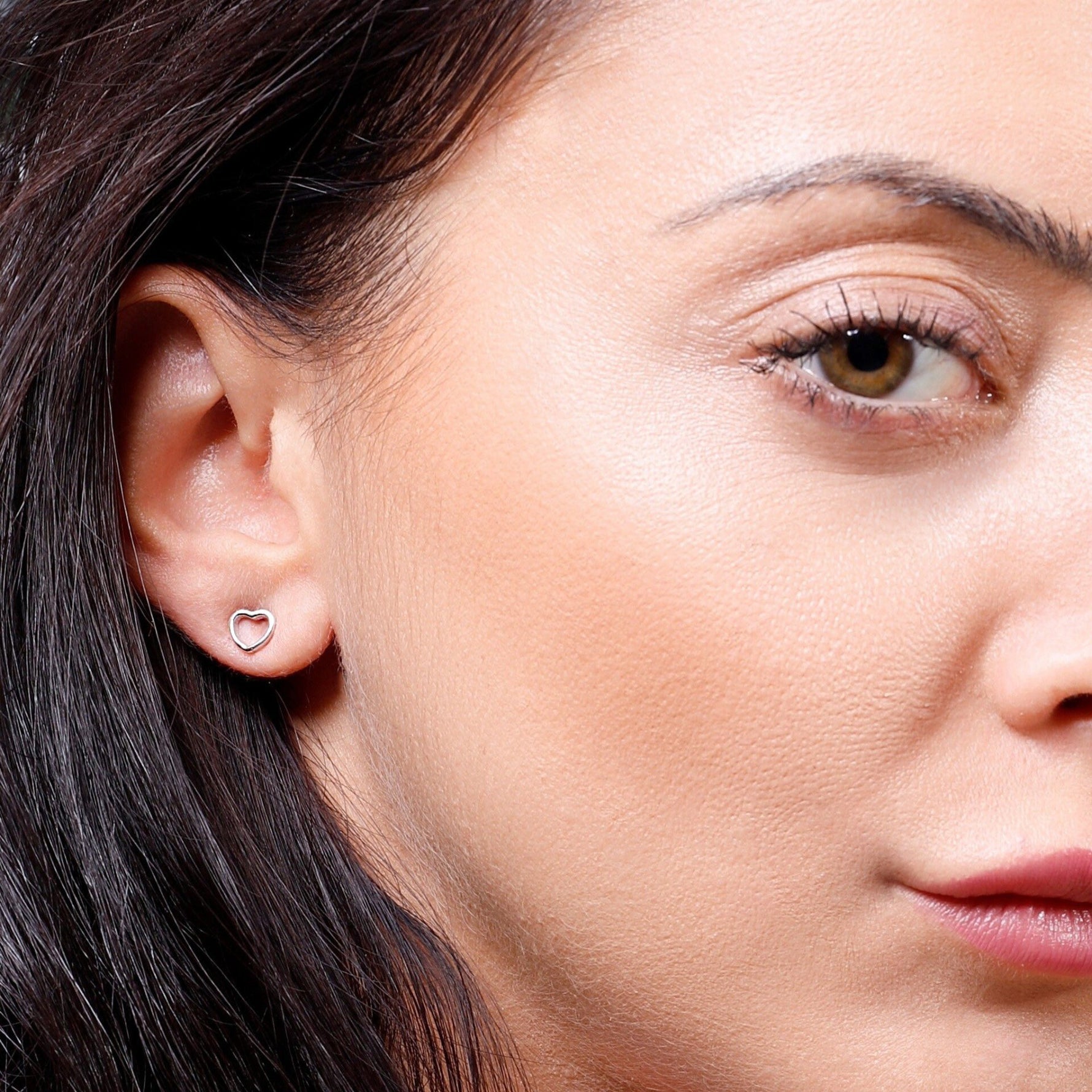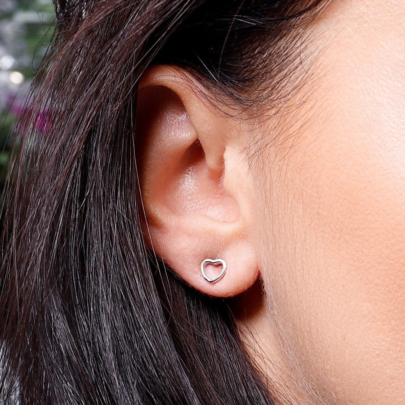 Beautiful on their own or can be paired with other earrings or jewelry. Cut out open heart stud with 3*4 mm dimension with post and butterfly.