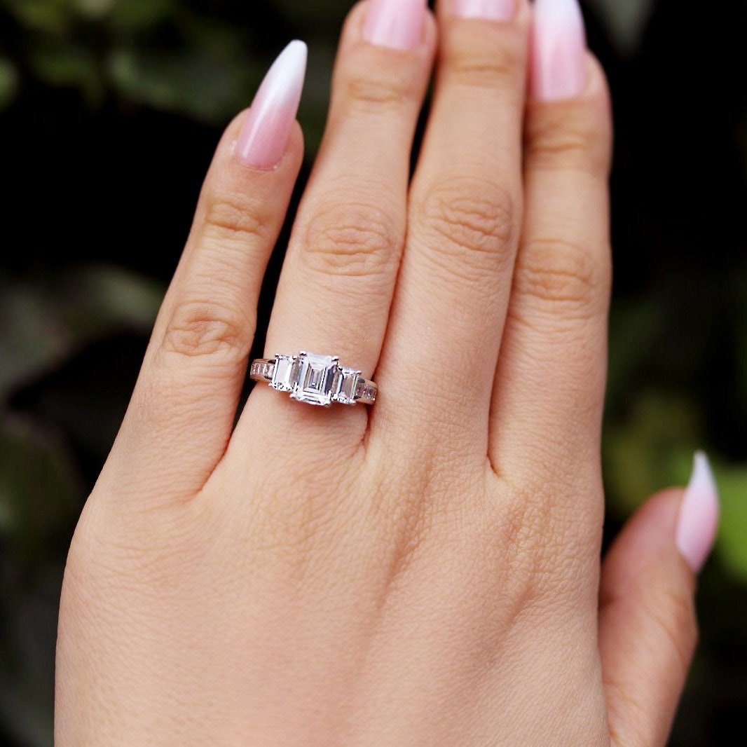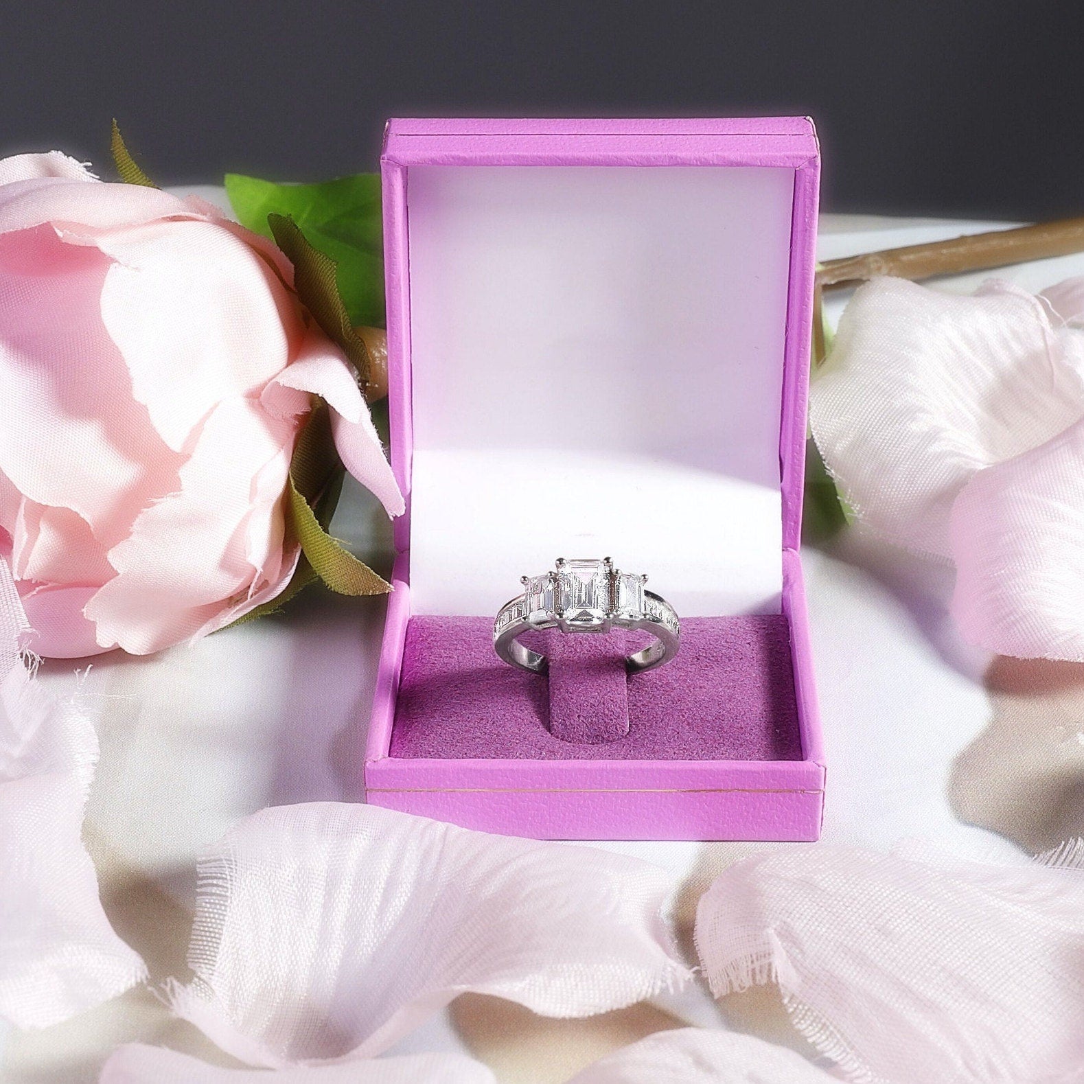 SISLA - 3Ctw Emerald Trilogy Ring | Sterling Silver Engagement Ring | Promise Ring for women | Eternity Ring in US UK size | High Quality!
