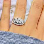 This beautiful simple & elegant silver ring (2pc) is hand-crafted from the finest 925 Sterling Silver and carefully finished to achieve maximum brilliance with fancy emerald & baguette cut stones. These Stones Sparkle in any light Complimented with a substantial Sterling Silver Setting.
