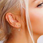 NEW Small wanderlust star huggie hoop earrings with Heart & Arrow CZ Stones. Super cute and wearable every day of the week, it's hard not to fall in love with these huggie earrings, you can wear these babies all day, every day!